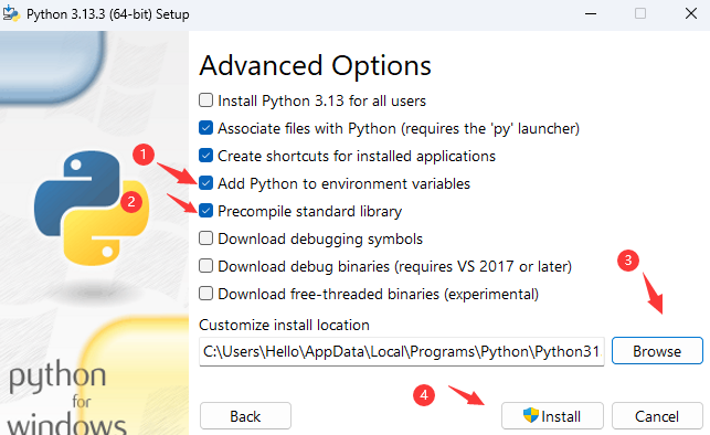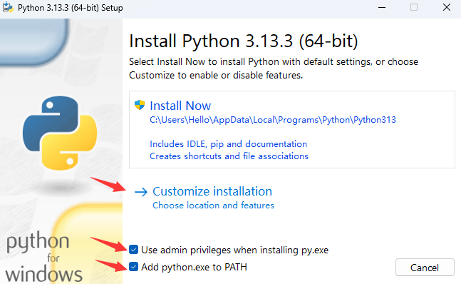 2,选择自定义安装,勾选添加 python.exe 到 path。