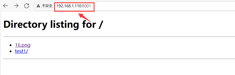 7,浏览器输入 http://localhost:8001,即可查看测试文件夹内容。