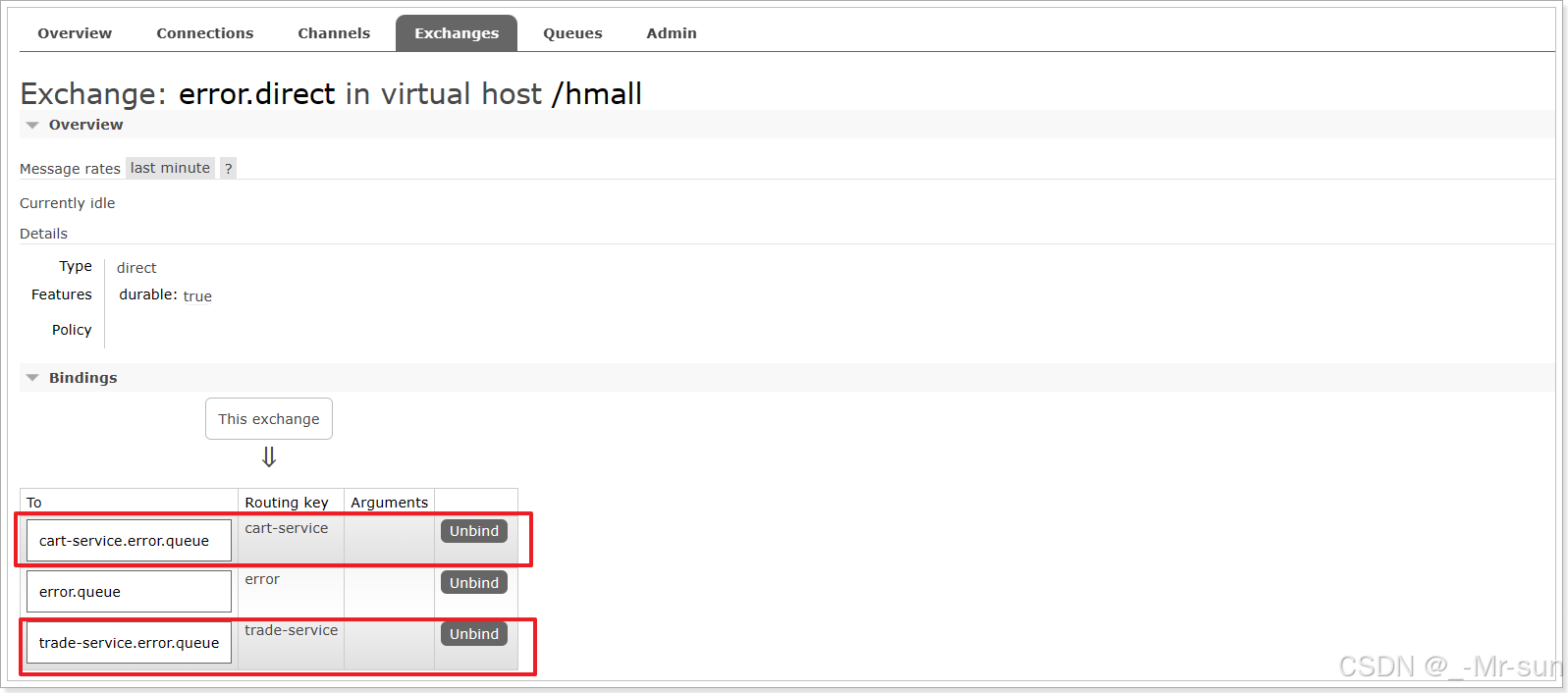 微服务名 + error.queue,也就是说要动态获取 - 将队列与交换机绑定,绑定时的