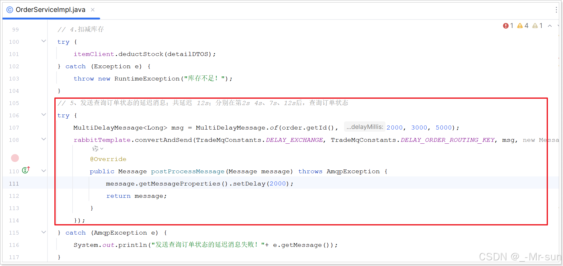 public void listenOrderCheckDelayMessage(MultiDelayMessage<Long> message) {