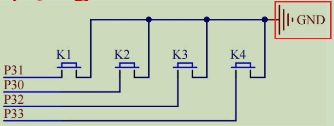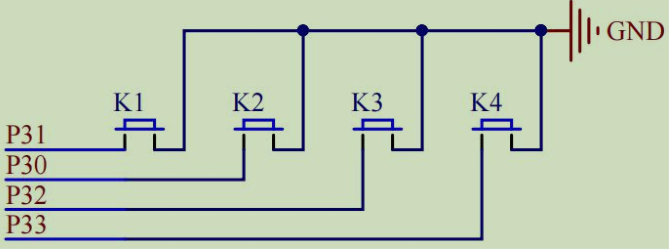 独立按键电路是由各个按键的一个管脚连接在一起接地,按键其他引脚分别连接到单片机 IO 口