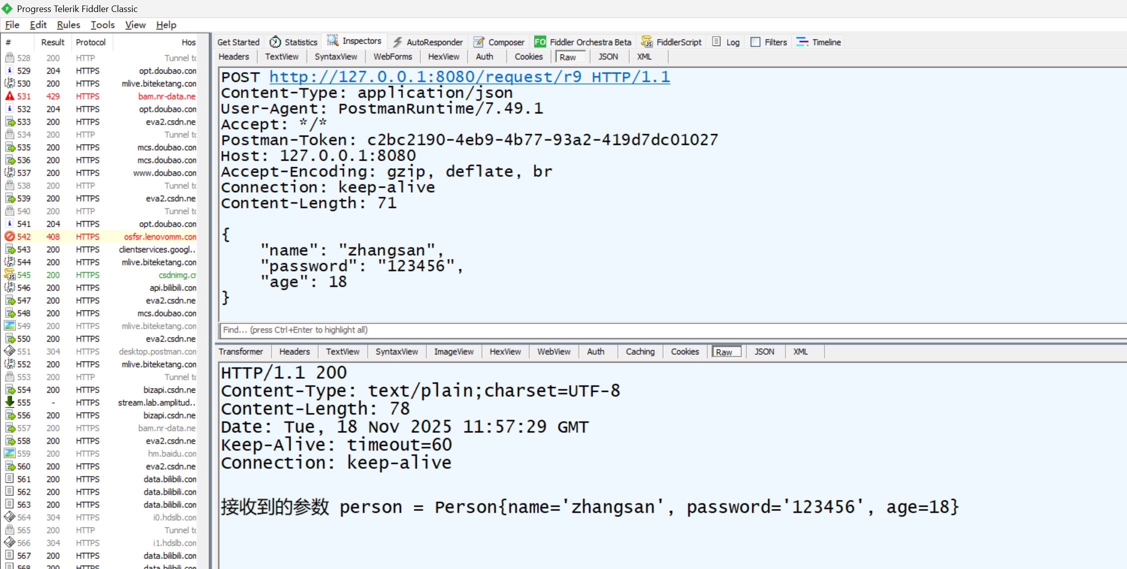 支持多个参数同时接收 ,参数顺序不影响绑定结果(请求的参数名称保持一致即可):