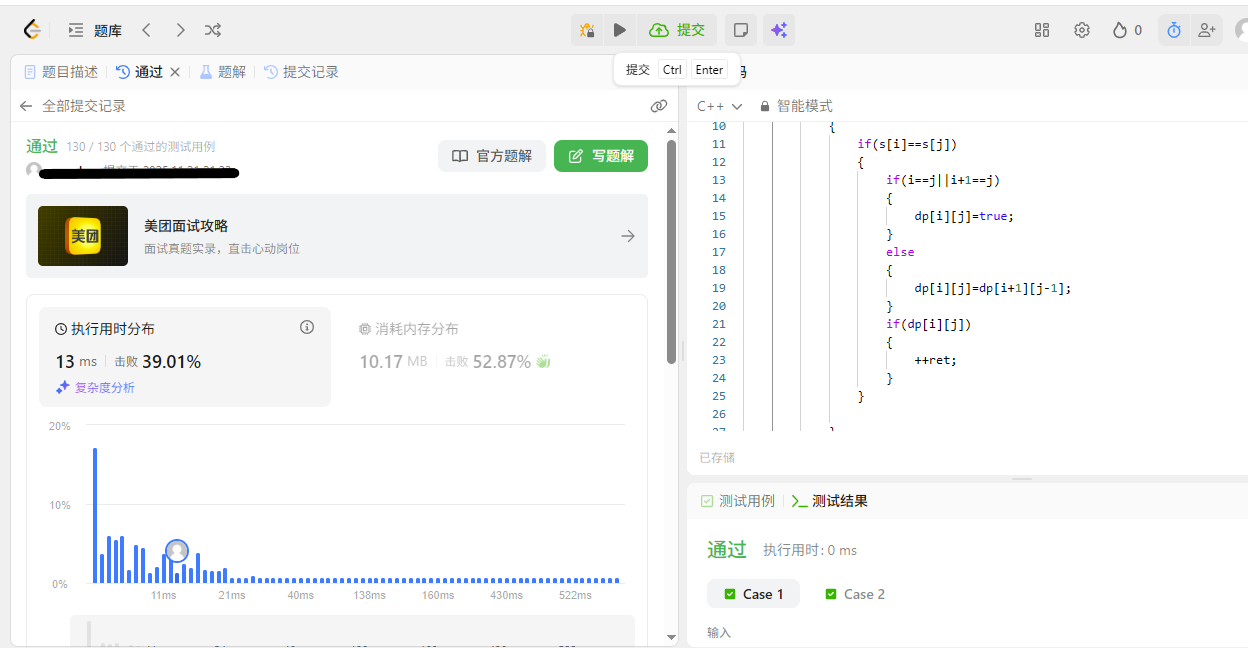 s[i]==s[j]&&(i+1<j)->dp[i][j]=dp[i+1][j-1]