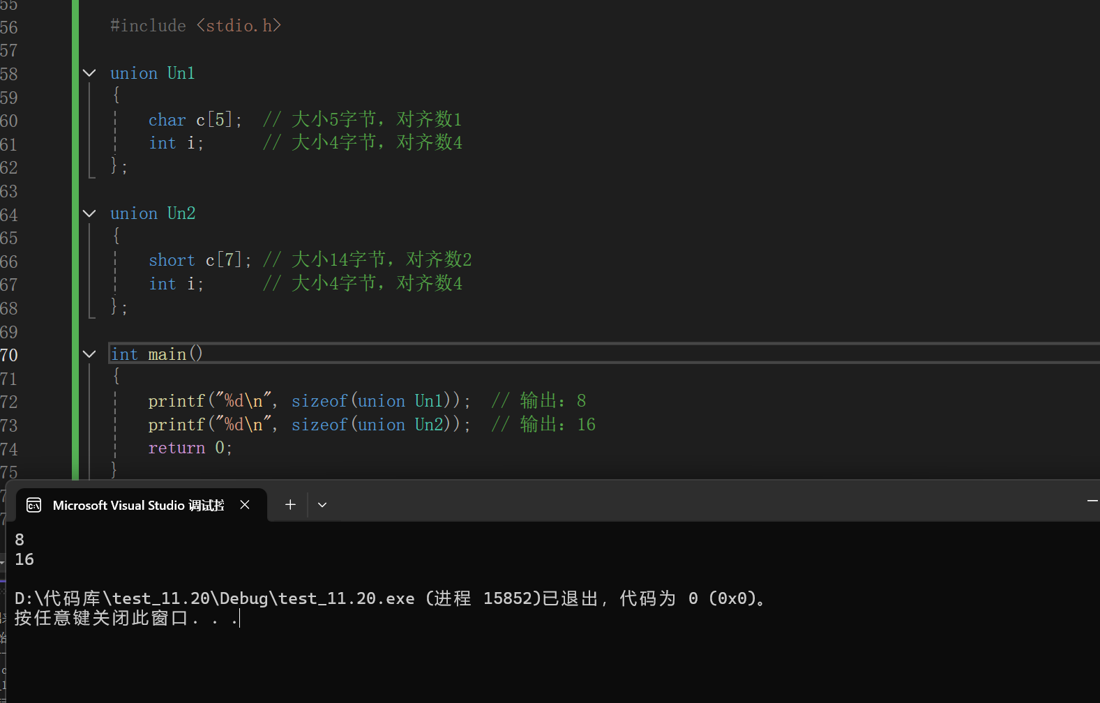 printf("%d\n", sizeof(union Un2)); // 输出:16