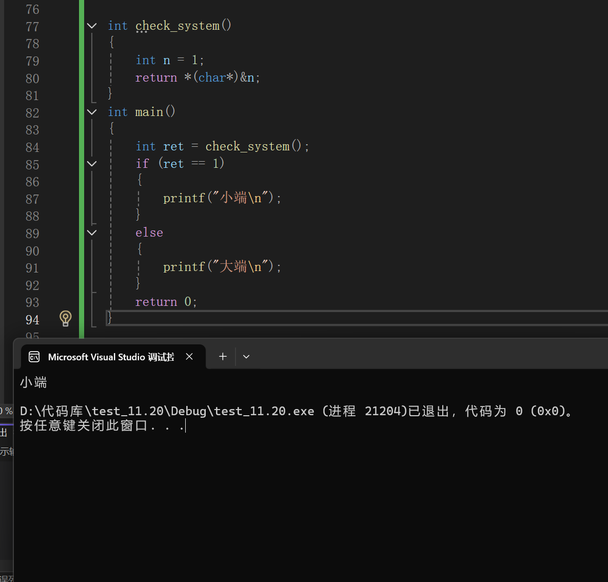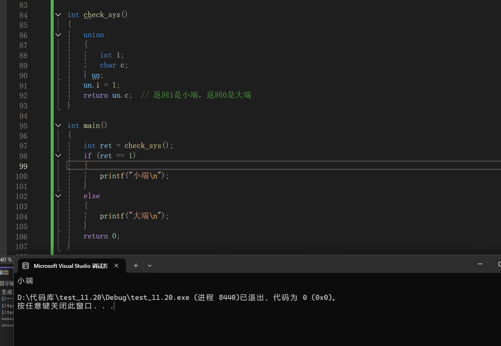 这里就巧妙的运用了联合体的特点对吧,i和c存储在同一块空间,un.c为第一个字节的内容,我们把第一个字节的内容返回是不是就可以了,这种思想就很巧妙,让人大吃一惊可谓是。