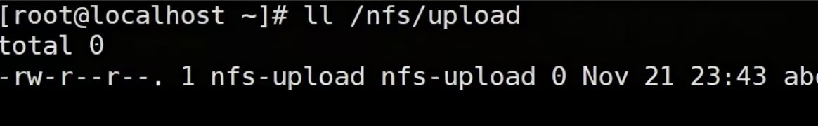 [root@localhost ~] mount 192.168.200.128:/nfs/upload /nfs/upload