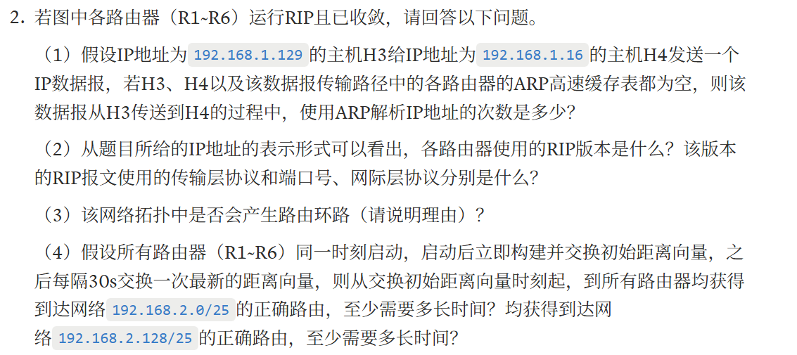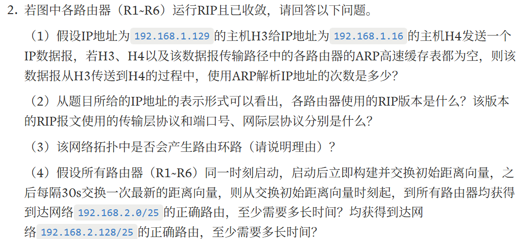 - 从题目中 IP 地址表示形式(如 192.168.2.0/25)可判断使用 RIPv2