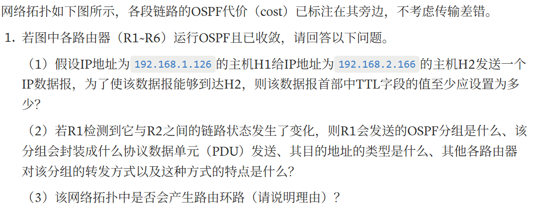 - 以下是选自湖科大高老师的每日一题 我觉得可以帮助大家彻底回顾一下OSPF以及RIP协议 我觉得如果第一遍能够把下面这些题目做的差不多的情况之下那么我觉得是很厉害的 因为下面包含了很多小的点 如果你并不是很了解的情况之下 那么想必不会做的很顺畅