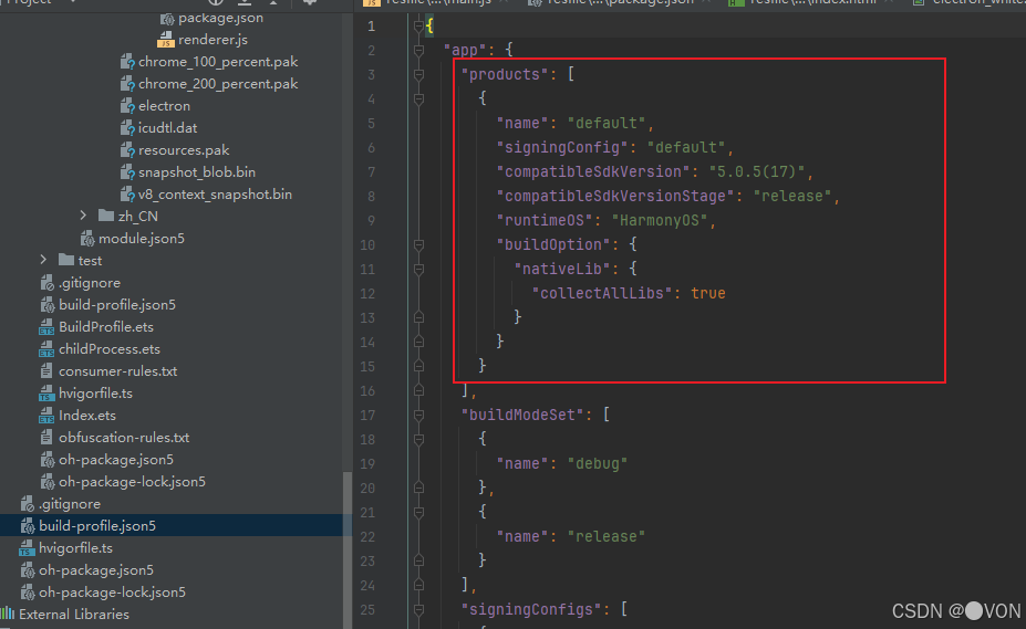 - 打开 DevEco Studio,选择 File → Open ,导入解压后的 Electron 预编译包根目录(通常命名为