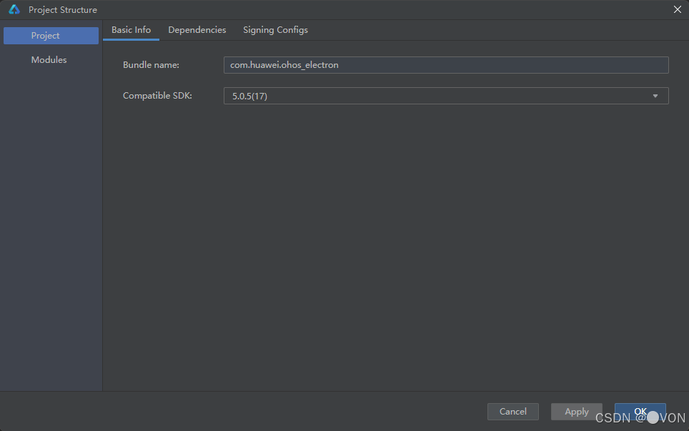com.huawei.ohos_electron)。 - Compatible SDK :选择