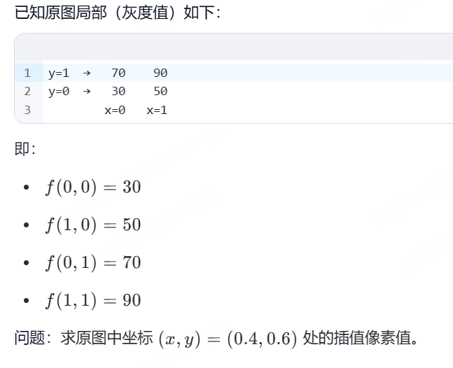 别管这个截图中的新图中的某个点了,肯定是整数,但是在原图中,要根据变换的方式去映射,映射到的位置可能是小数