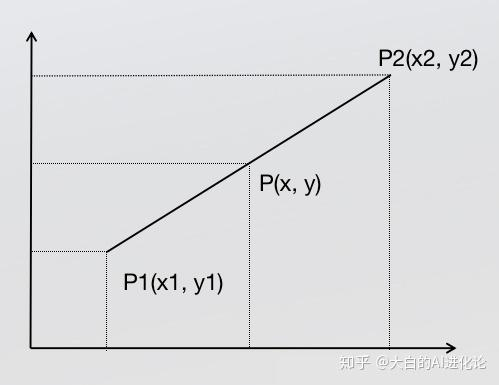 针对于单线性插值,已知p1和 p2 计算x1 x2区间内某一位置x在直线上的y值,直接求一条直线公式