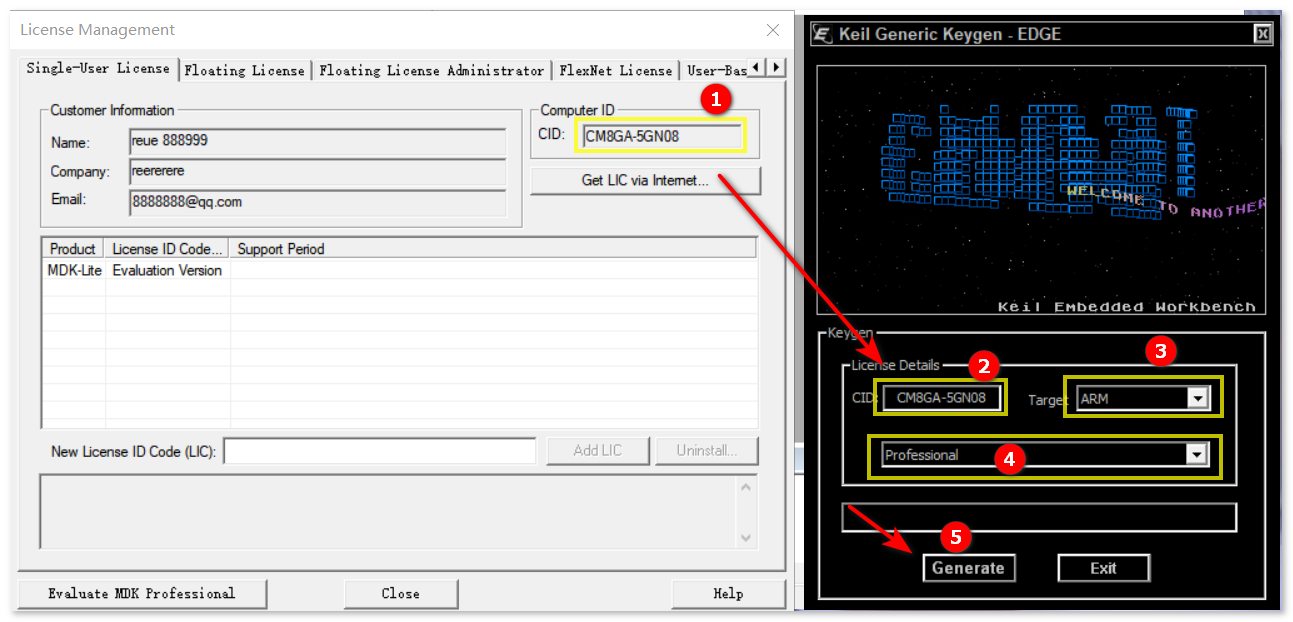 ④ 点击【Generate】生成激活码