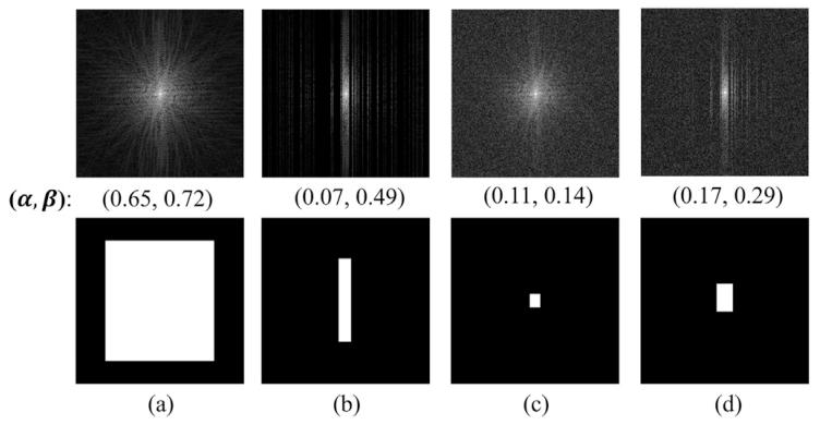 Fig. 6. Visualization of k-space data and predicted low-frequency masks for:(a) high-quality T1WI MRI, (b) under-sampled T2WI MRI, (c) low-field T1WIMRI, and (d) low-field under-sampled T2WI MRI