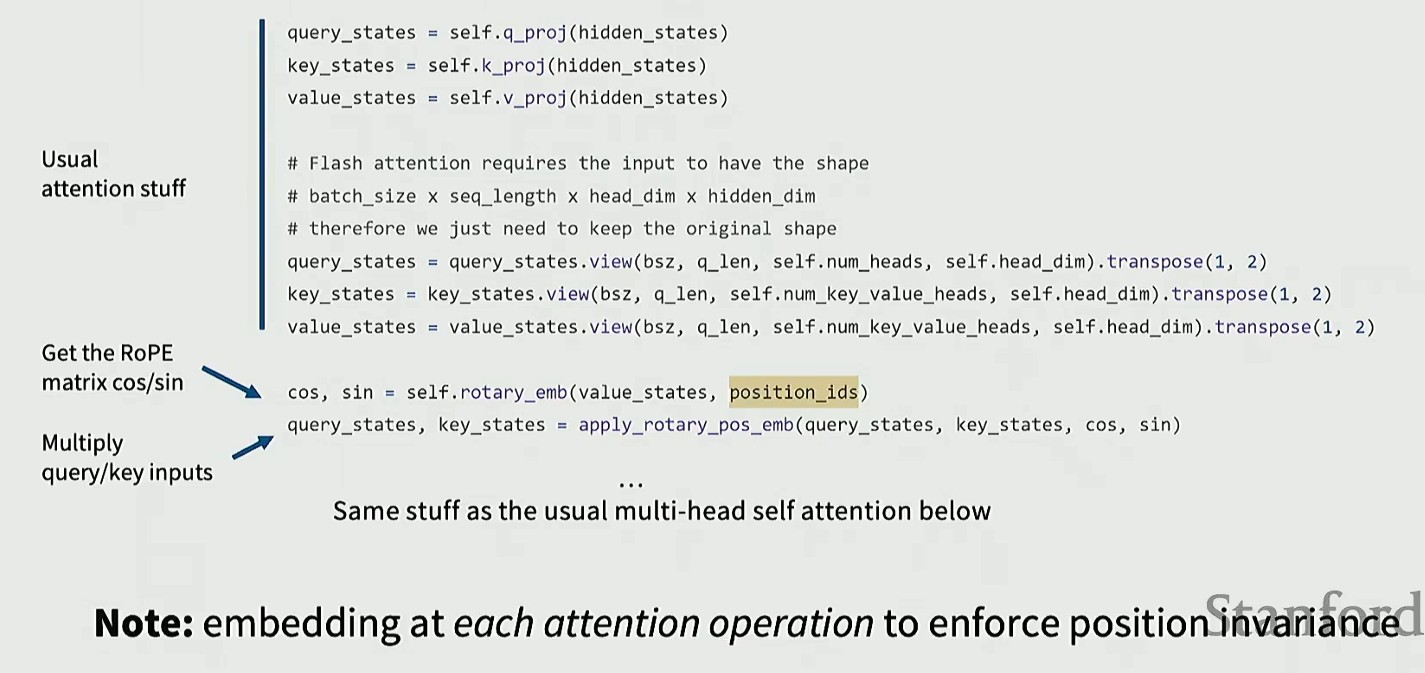 RoPE 中,正弦余弦嵌入是在自注意力层中发挥作用,而不是在底部添加位置嵌入
