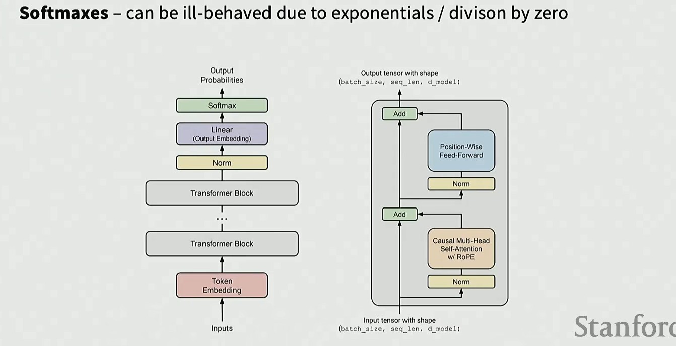 这种情况通常来源于 Softmax,其中包含了指数运算,容易出现数值不稳定,并且还有除法运算,可能除零错误(存在于模型输出端,以及注意力机制中)
