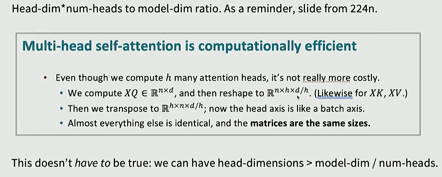 Transformer 的多头注意力把 拆分为若干头,每个头的维度是