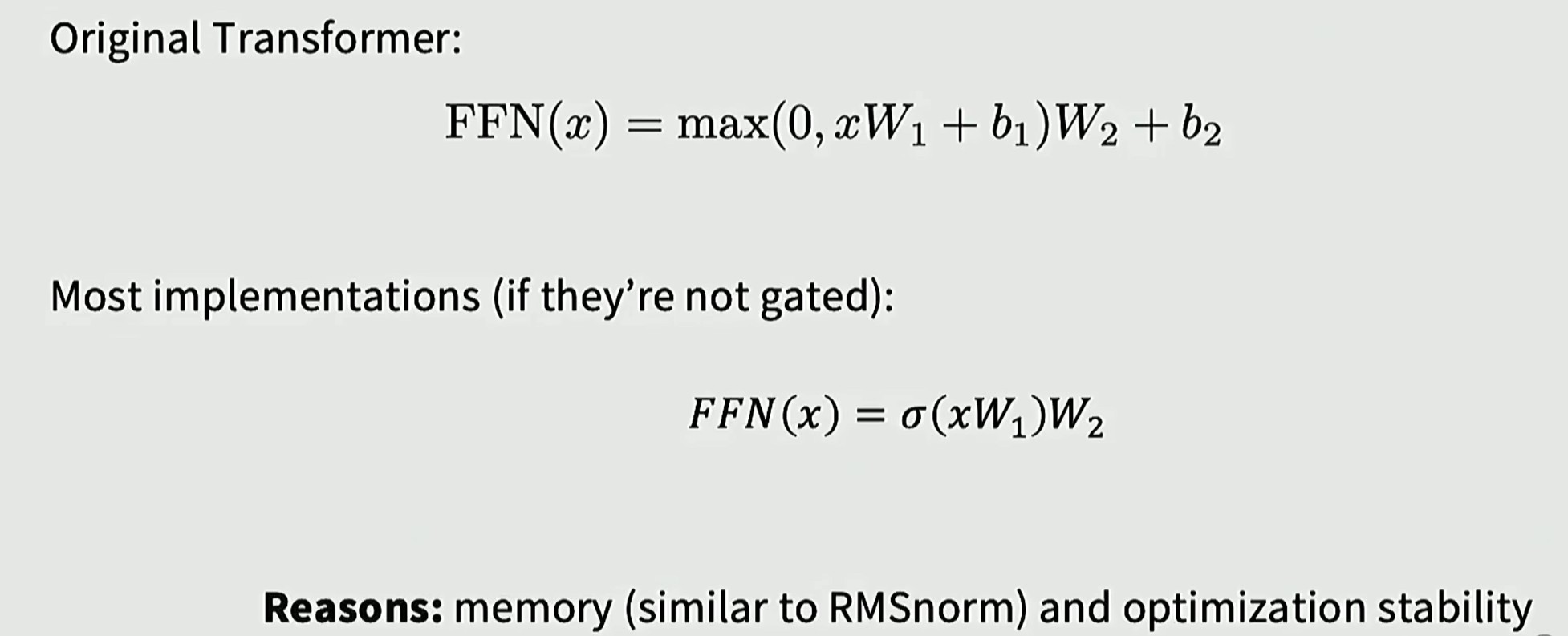 现代 transformers 的另一个共识:去除偏置项,仅保留纯粹的矩阵乘法运算