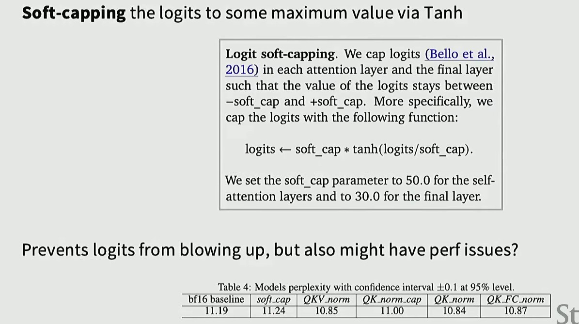 对 logits 做软截断:用 tanh 把 logits 压缩到 [-1,1] 区间,防止梯度爆炸,但副作用是削弱模型的表达力(不推荐使用)