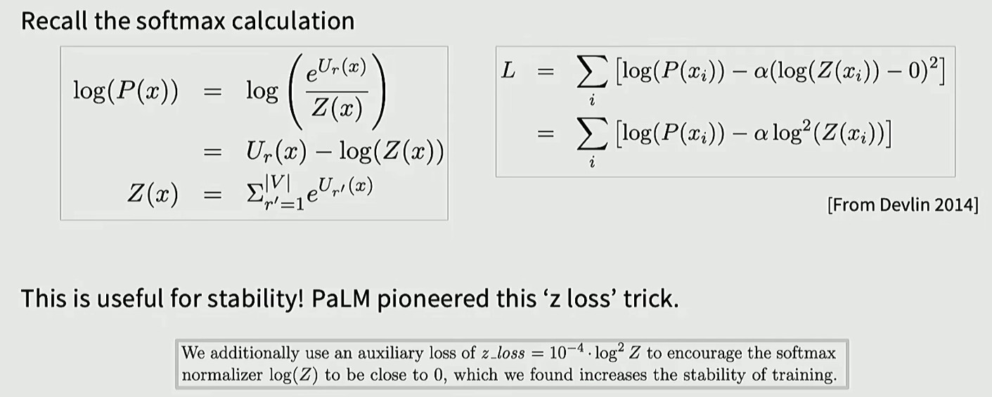 训练稳定性:模型规模越大,越容易在训练中翻车,表项为 loss 曲线突然爆炸,梯度不可控