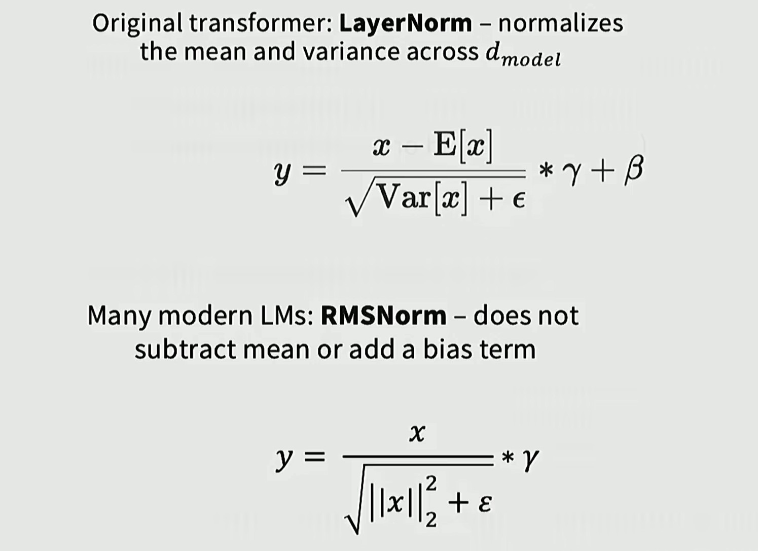RMSNorm:无需减去均值,也无需添加偏置项,效果差异相当(可以简化模型)