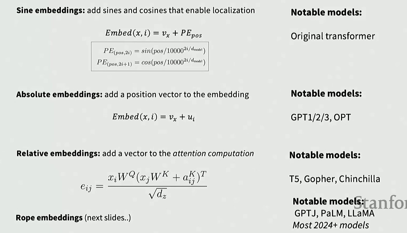 位置编码:符号嵌入 -> 绝对位置嵌入(简单地添加一个位置信息,将学习得到的位置向量融入词嵌入) -> 相对位置嵌入(在注意力机制的计算过程中添加特定向量)
