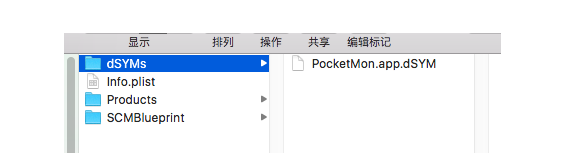 强调要对应.dSYM 是保存 16 进制函数地址映射信息的中转文件,我们调试的 symbols 都会包含在这个文件中,并且每次编译项目的时候都会生成一个新的 dSYM 文件。测试给过来的.crash文件中,关于崩溃的确切语句和函数部分只有16进制地址符号,并不是我们在xcode调试时看到的xxx.cpp(xxfunction xx行)这样的。一般发布一个版本需要保存好对应的.dSYM和.app包,方便分析crash。如图所示: