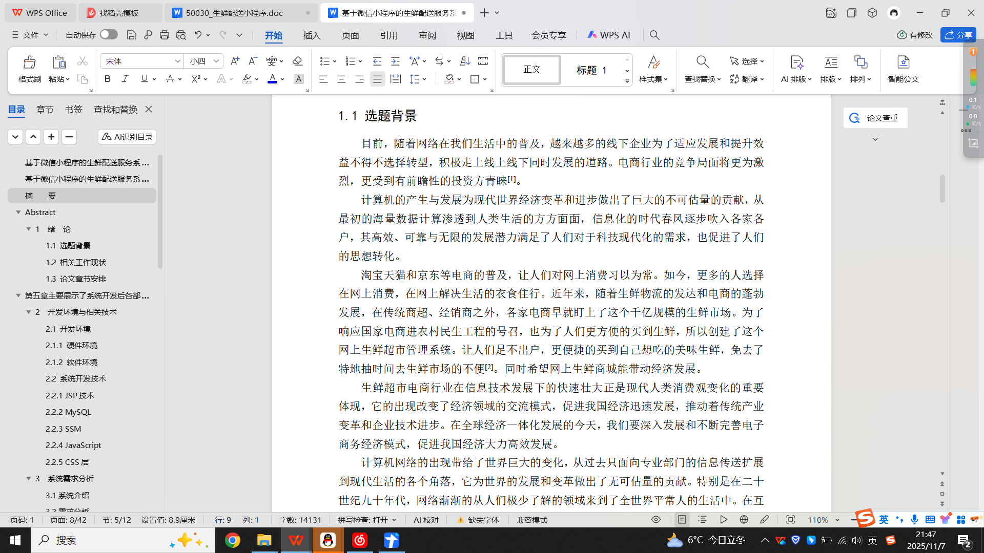 该文主要讲述了生鲜配送服务系统的设计过程与实现结果。首先从本课题能够带来的好处入手研究,搜集各用户心目中理想的生鲜配送服务系统,根据调查从用户角度分析,将本系统划分为前台和后台。给前台购物用户营造一个能够简单实现用户注册、登录、购物车、查看订单等的功能;给后台管理用户建立一个可以对用户、商品和订单进行操作简单管理的功能。系统将运用IDE(Eclipse)开发工具构建开发环境,用Java语句实现,节约环境配置时间,并结合MySQL数据库实现了网上生鲜销售,并列出核心功能的界面和功能描述,而且对生鲜销售的核心功能就行了系统测试。生鲜是我们身体中不可或缺的营养,开发一个能够方便大家使用、融入我们日常生活的生鲜配送服务系统是非常必要的。