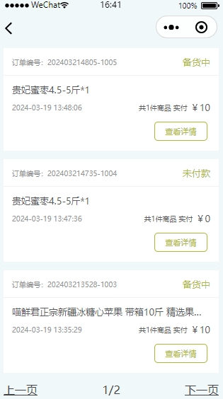 用户将购物车中的商品进行提交付款后会产生一个订单信息,订单信息会储存到订单列表中,用户可以随时到订单列表中查看某一订单的状况详情。