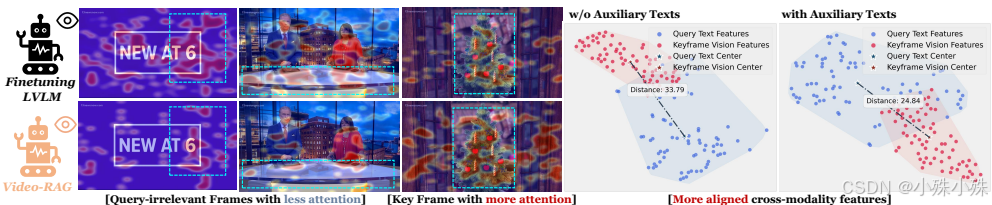 **促进多模态对齐:**辅助文字像"桥梁",帮助模型更好地把用户的语言问题与对应的视频画面关联起来。