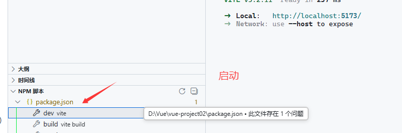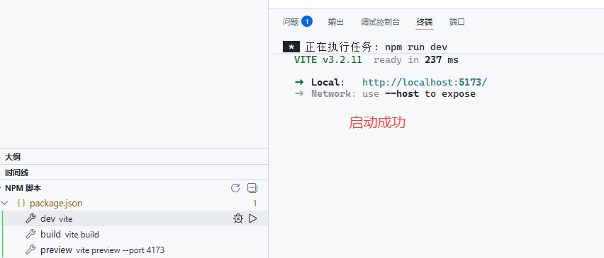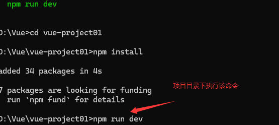 (1) 执行命令:npm run dev 就可以启动Vue项目