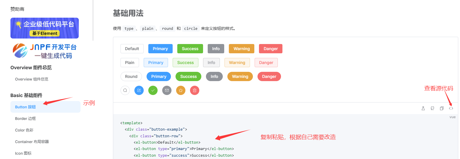 <el-button type="warning">Warning</el-button>