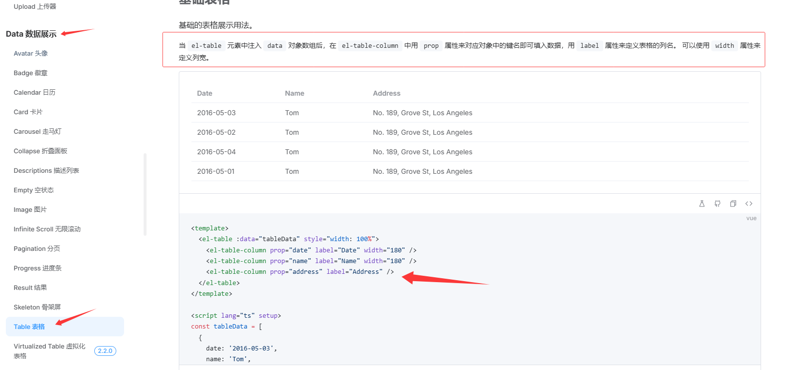 <el-table-column prop="address" label="Address" />