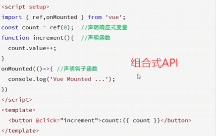是Vue3中提供的一种基于函数的组件编写方式,通过使用函数来组织和复用组件的逻辑,提提供了一种更灵活、更可组合的方式来编写组件