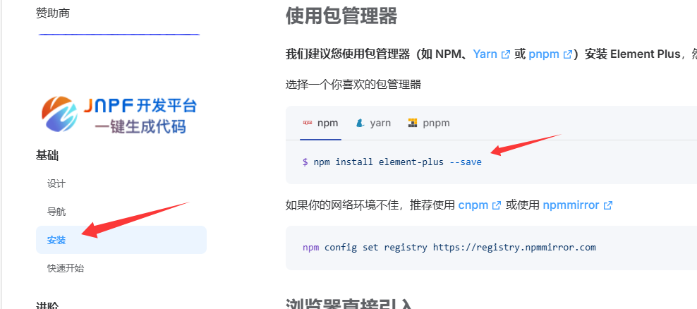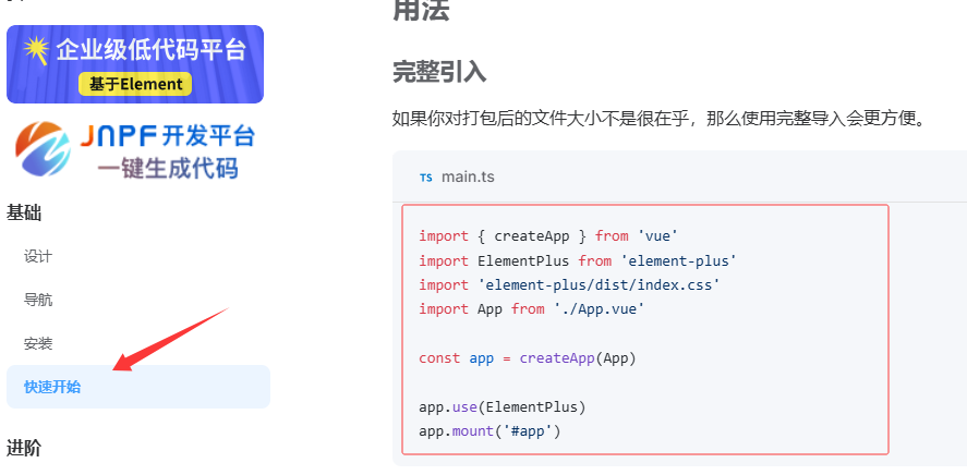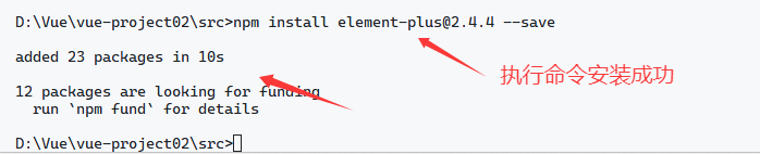 - 参照官方文档,安装Element Plus组件库(在当前工程的目录下): npm insert element-plus@2.4.4 --save 不指定版本默认按照最新版本