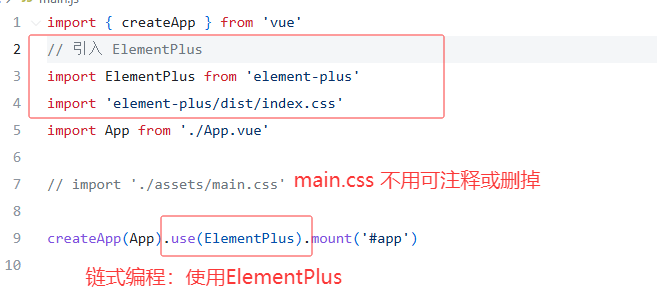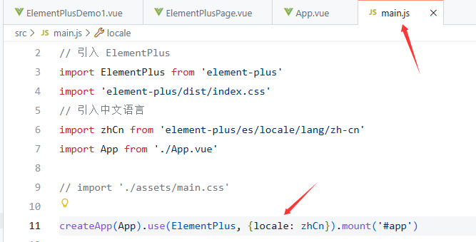 - main.js中引入Element Plus组件库
