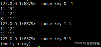 lrange获取从 start 到 stop 区间的所有元素,左闭右闭,越界的下标不返回元素。