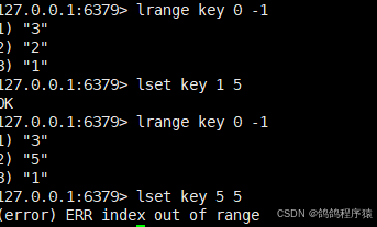 返回值:成功修改OK,下标越界报错(error) ERR index out of range