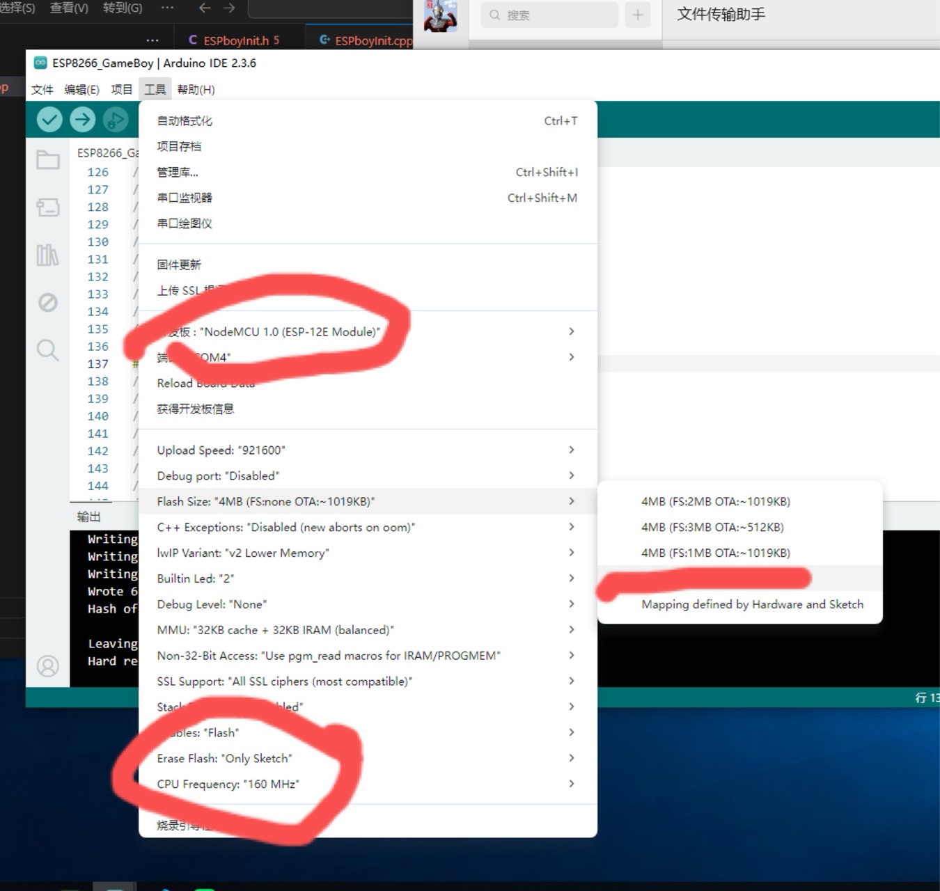 主要是mcu类型,FS稍小一些,不然程序存不下,还有主频设置为160M