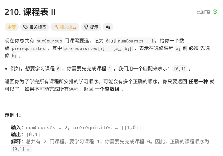 这其实是算法中一种常见的进阶模式:存在性判定 -> 构造性求解 。好消息是,对于拓扑排序而言,只要我们理解了上一题的 Kahn 算法,这道题几乎就是"送分题"。因为 Kahn 算法的执行过程,本身就是在按顺序"剥离"课程,这个剥离的顺序,天然就是我们想要的答案!