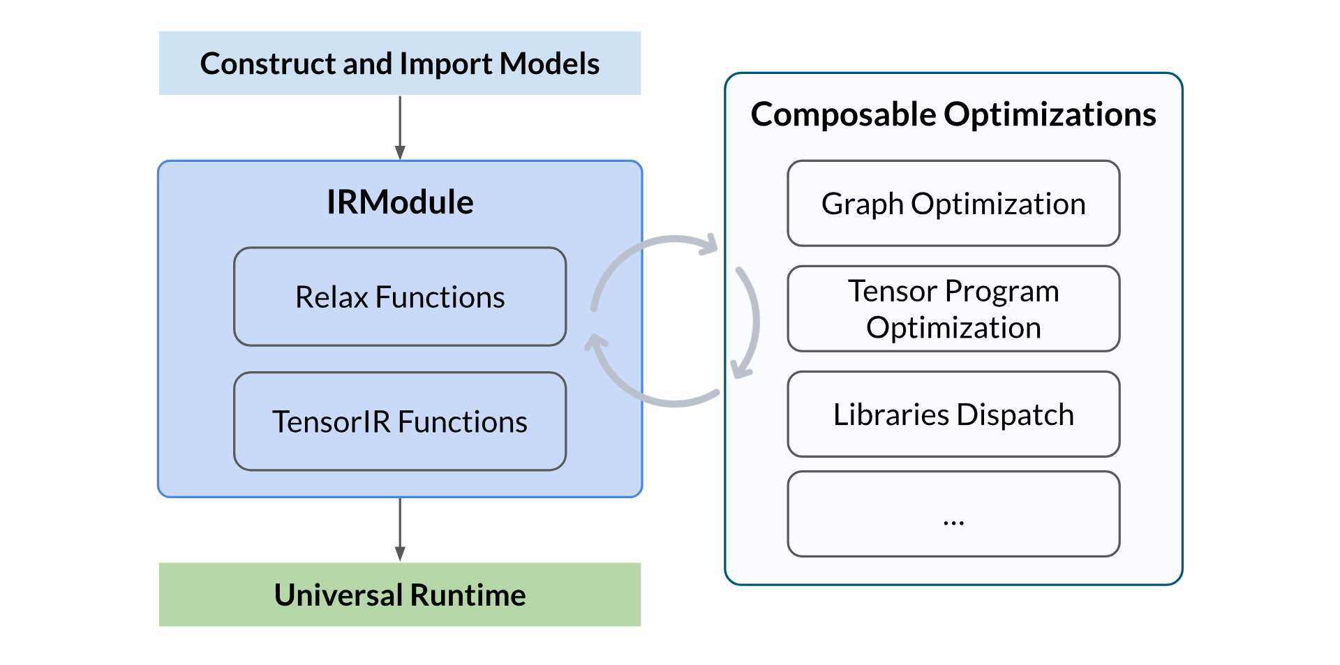 - 执行可组合优化:执行一系列优化转换,包括计算图优化、张量程序优化和算子调度/分发等
