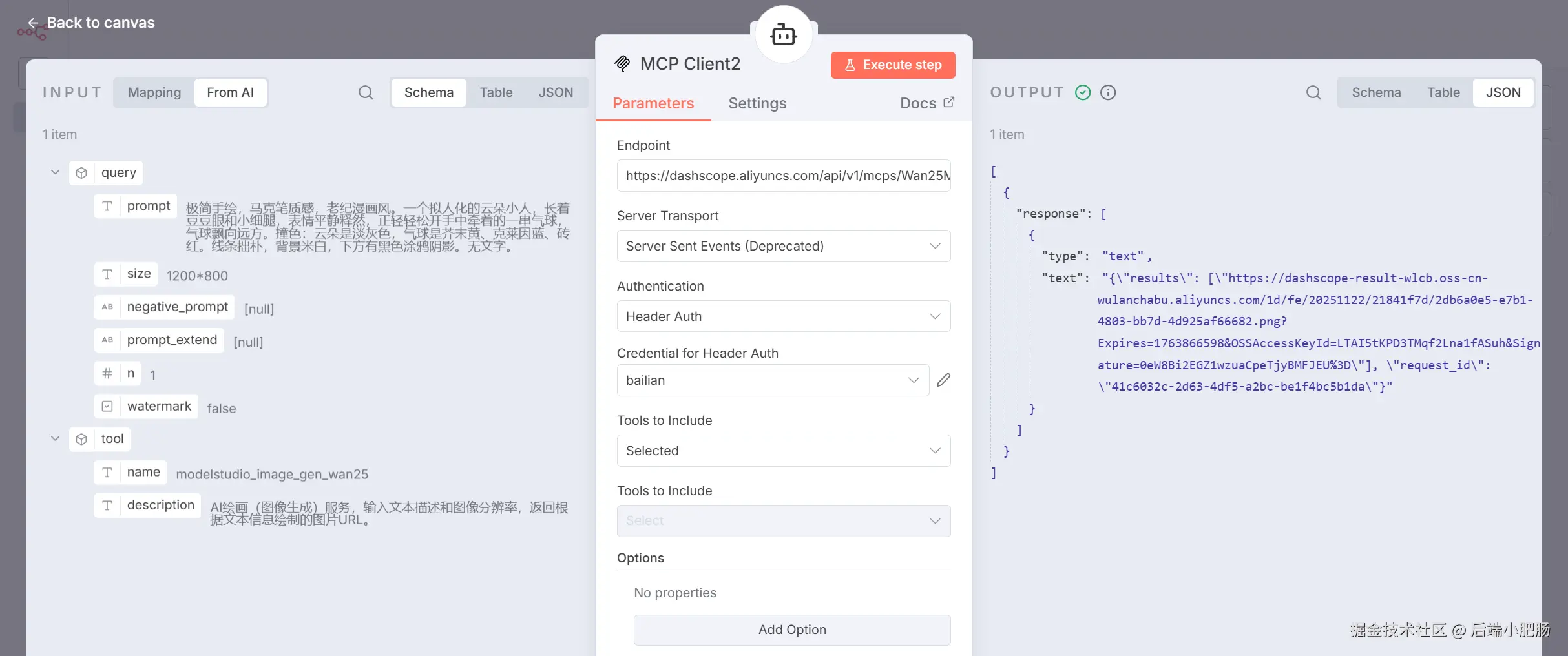 - Tool处点击【+】新增MCP Client Tool用于图片生成。