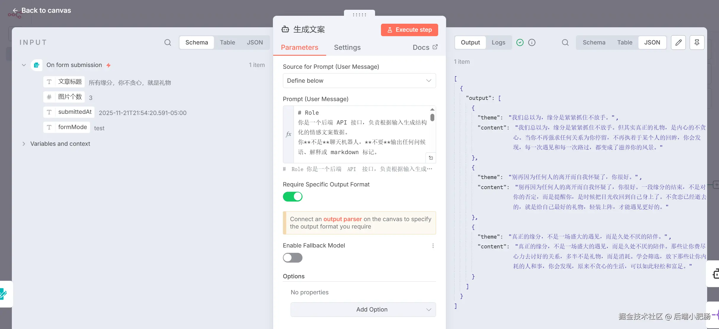 "wenan":{{ $('生成文案').item.json.output.toJsonString() }},
