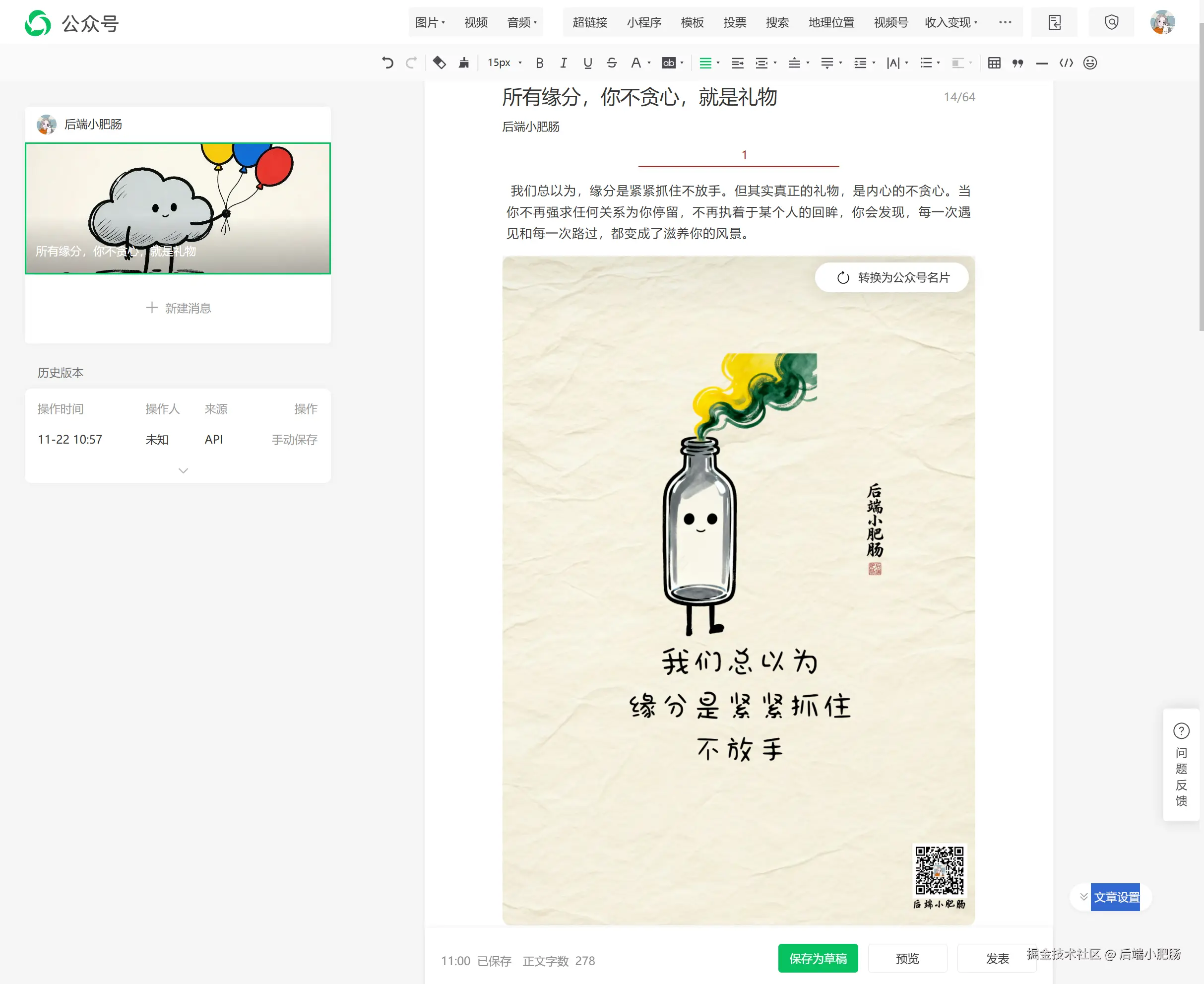 基于插件将前置成果内容(封面、标题、正文漫画)发布到公众号草稿箱。