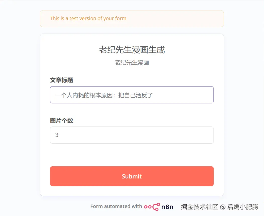 大家好,我是小肥肠!还在羡慕老纪先生漫画的10w+?今天带来 n8n + Coze新实战:全自动复刻老纪风格!提交标题,AI包办文案生图,几分钟神韵十足的漫画直通你的草稿箱!