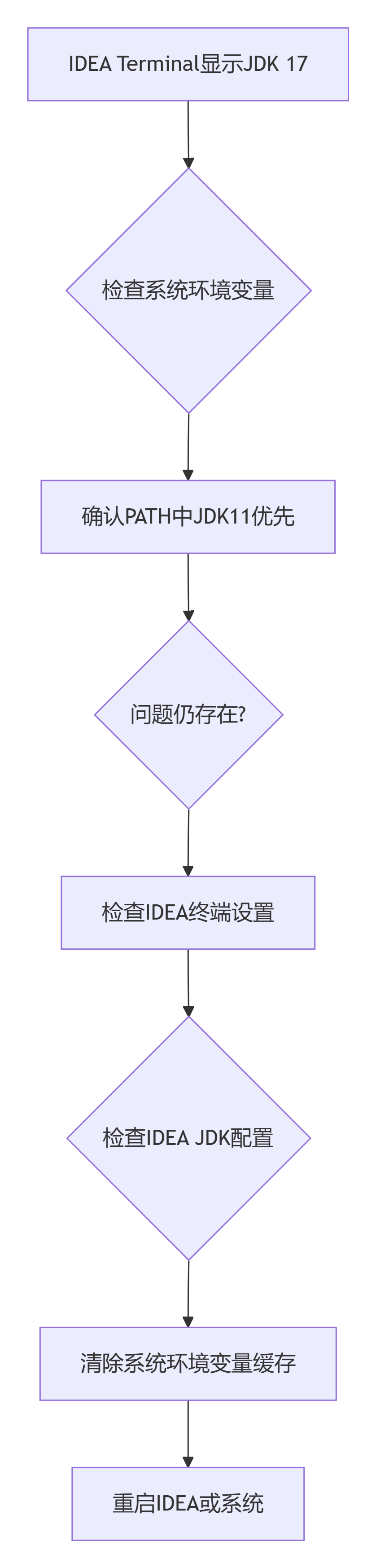 修正环境变量:如果发现PATH中JDK 17的路径在JDK 11之前,请调整PATH变量中JDK路径的顺序,确保JDK 11的bin目录位于JDK 17之前。