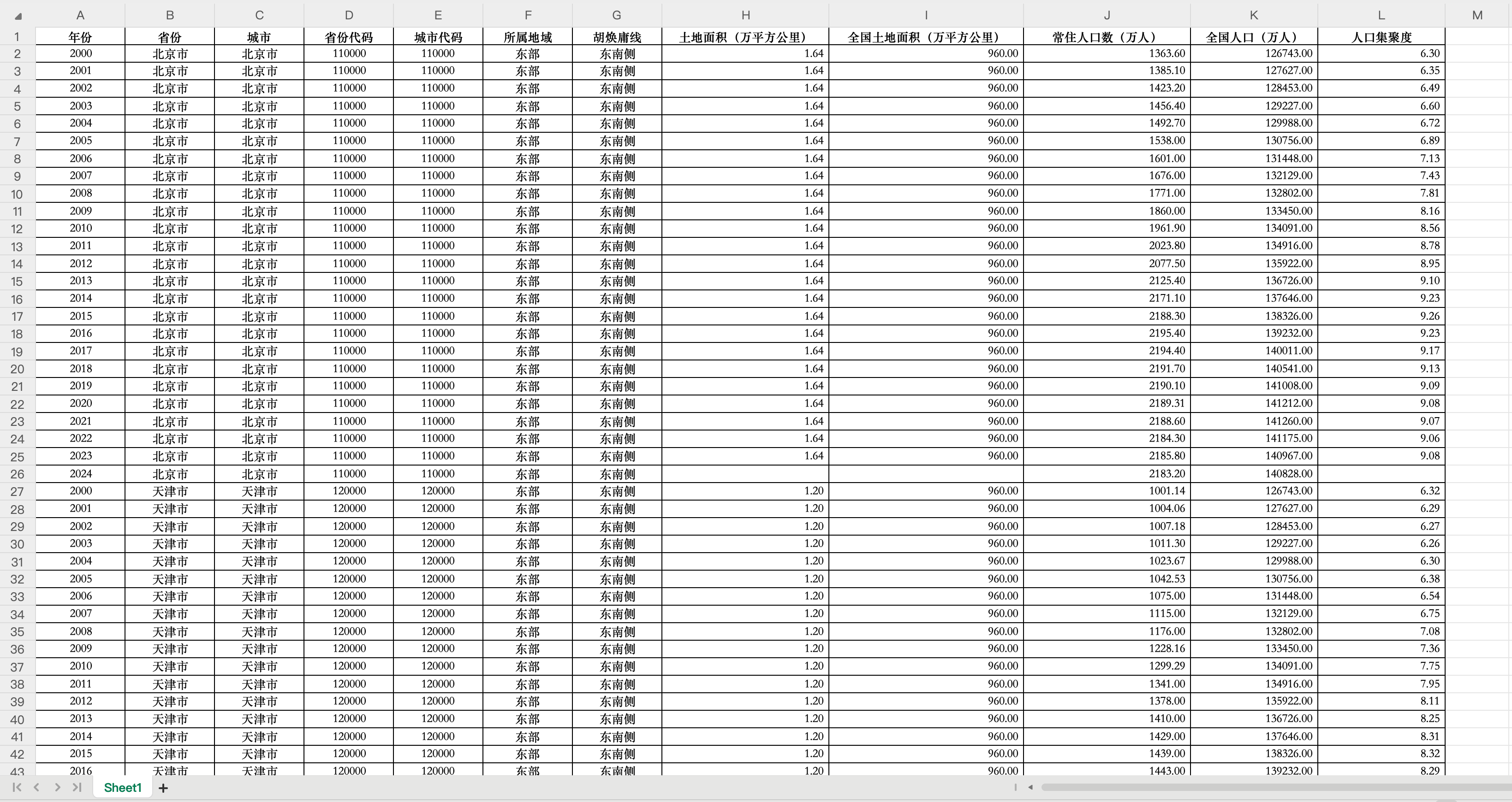 用途:可用于研究人口集聚对科技创新、生产效率、产业结构升级、区域发展等的影响