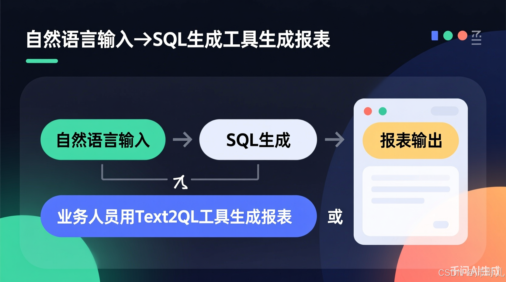 💡 Text2SQL的本质是"降低数据访问门槛":它将IT人员的"SQL技能"转化为"AI能力",让业务人员无需学习SQL,即可自主获取数据。这种"去技术化"的转变,将推动数据报表从"IT主导"走向"业务主导",成为企业数字化转型的关键工具。