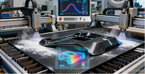 在"双碳"目标与新能源汽车续航需求的双重驱动下,碳纤维凭借高强度、轻量化的核心优势,成为汽车轻量化部件的优选材料。而AI成型调控与强度性能数字孪生验证技术的深度融合,正破解碳纤维制造难题,推动汽车轻量化迈入智造新阶段。
