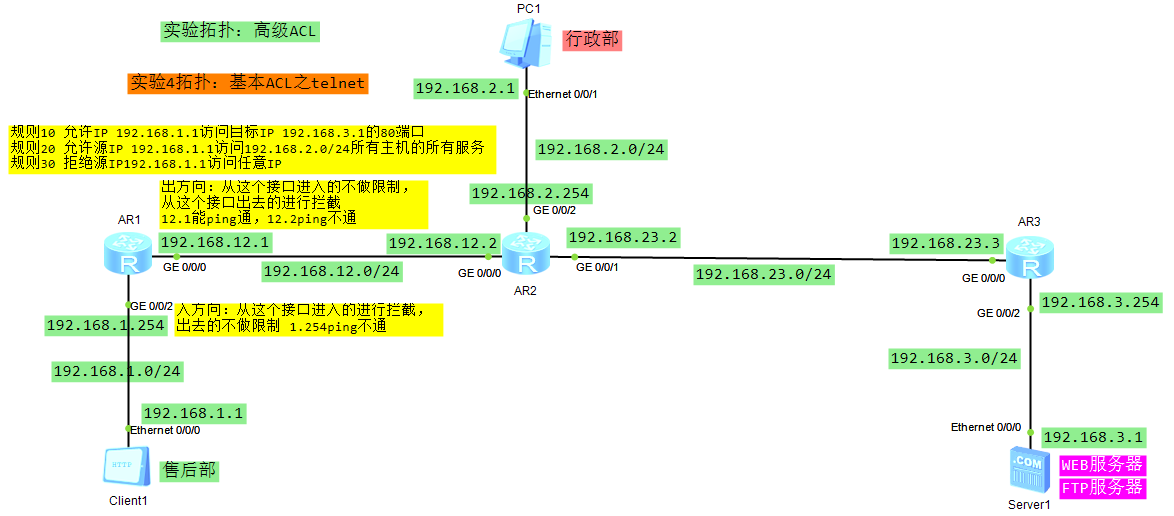 2)售后部仅仅能访问 Server1上的Web服务,不能访问其他服务